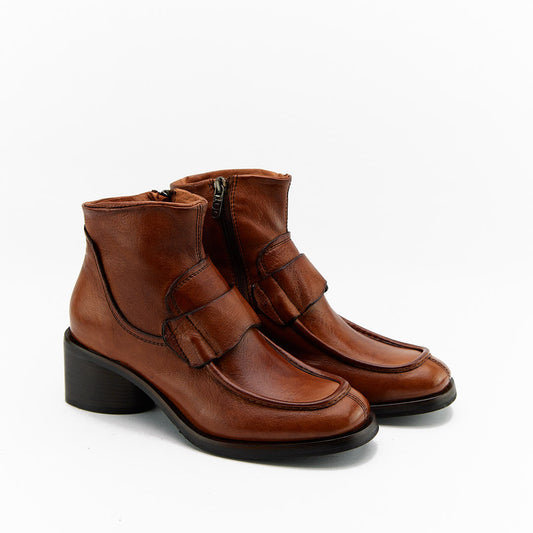 GEOMETRIC CUOIO - Women's Zip Ankle Boot in Garment Dyed Buffalo Leather - HUNDRED100®