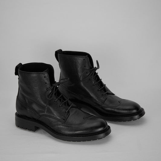 MEDDY BLACK - Women's Lace-up Ankle Boot in Vegetable Lambskin - HUNDRED100®