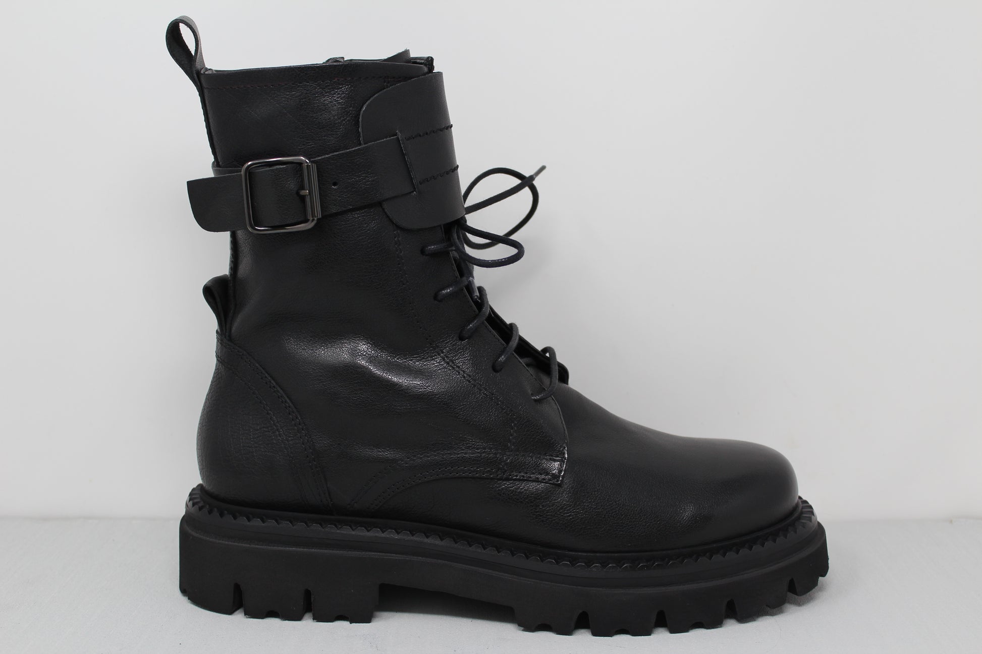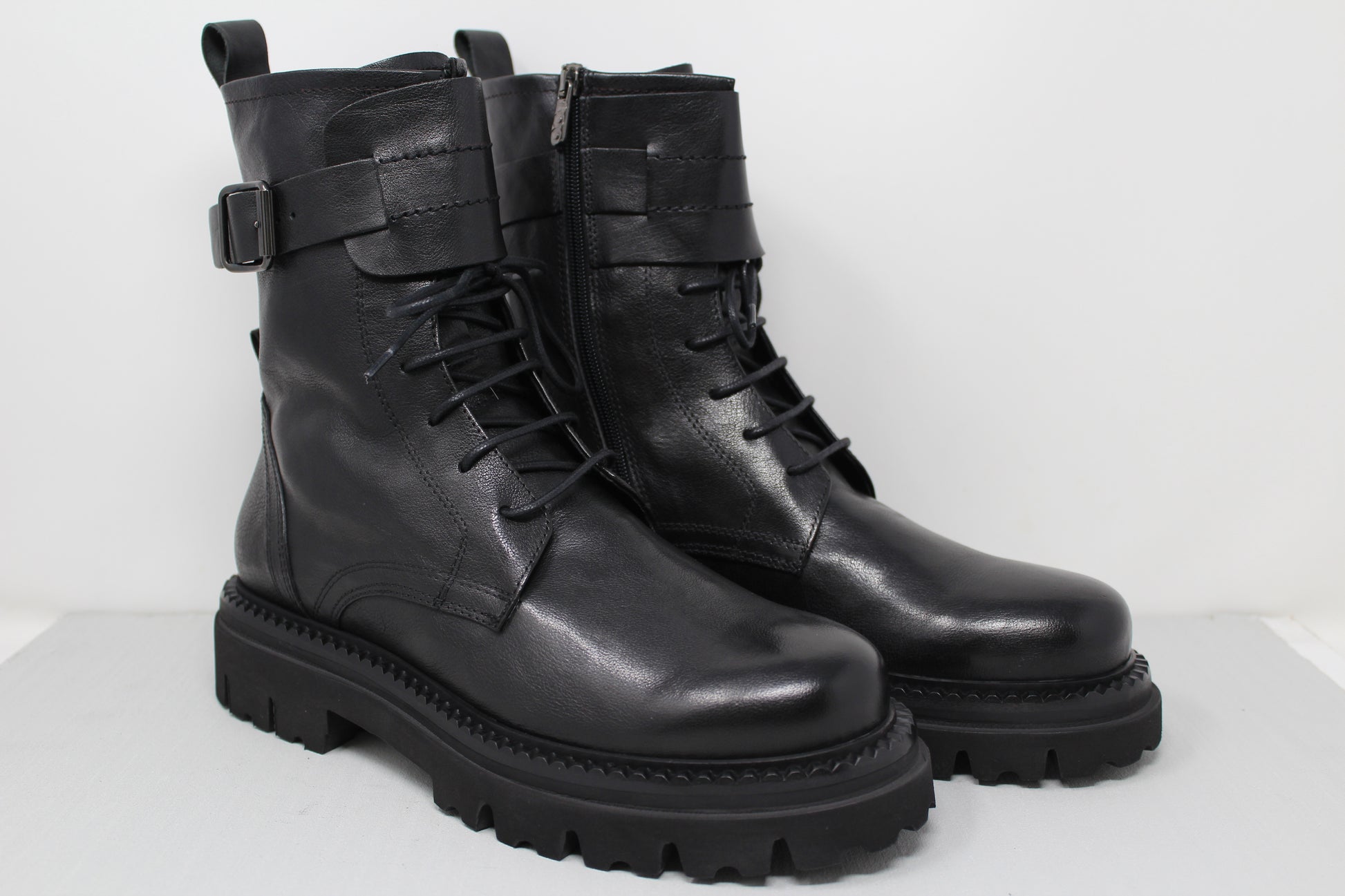 Men's lace-up ankle boot with internal zip, ornamental buckle and 8-hole lacing made of buffalo leather.
