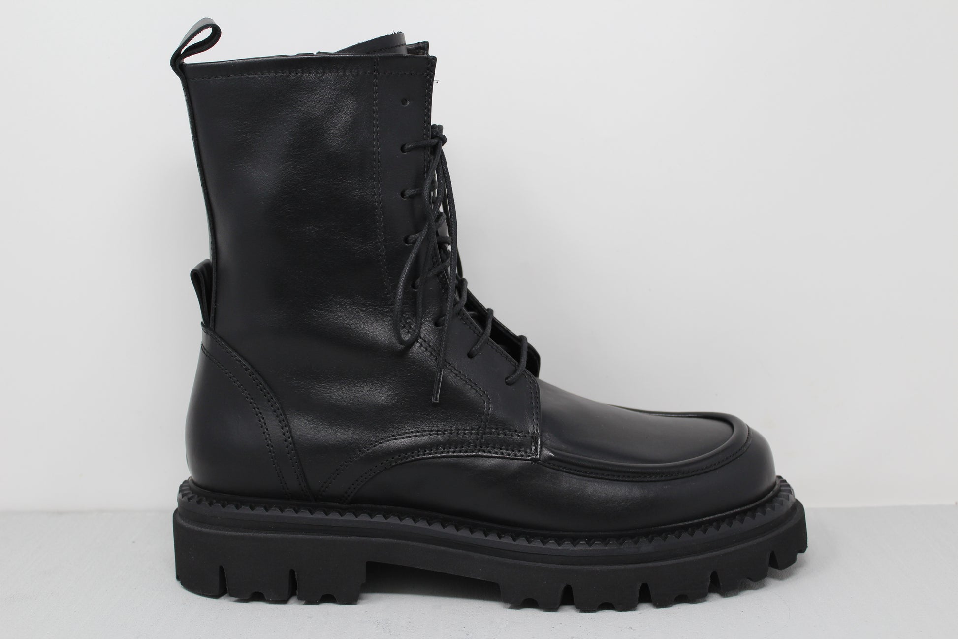 Men's lace-up ankle boot with 8-hole lacing and internal zip made of soft calfskin.