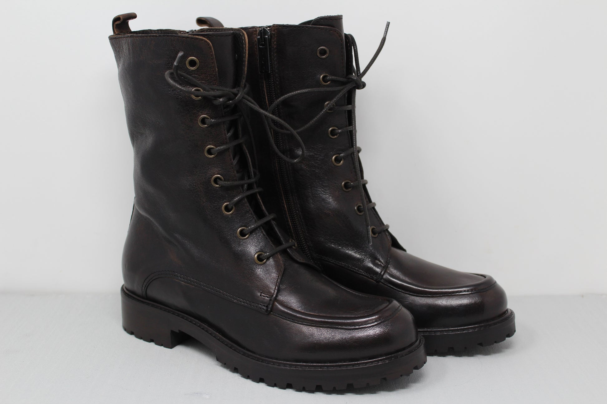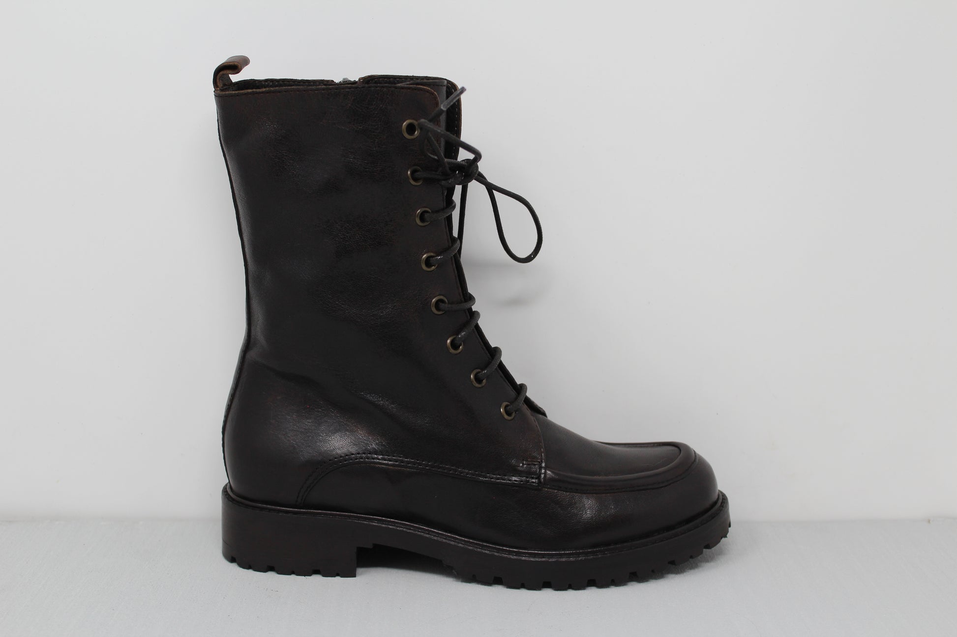 Women's combat ankle boot with 8-hole lacing and internal zip made of soft lambskin.