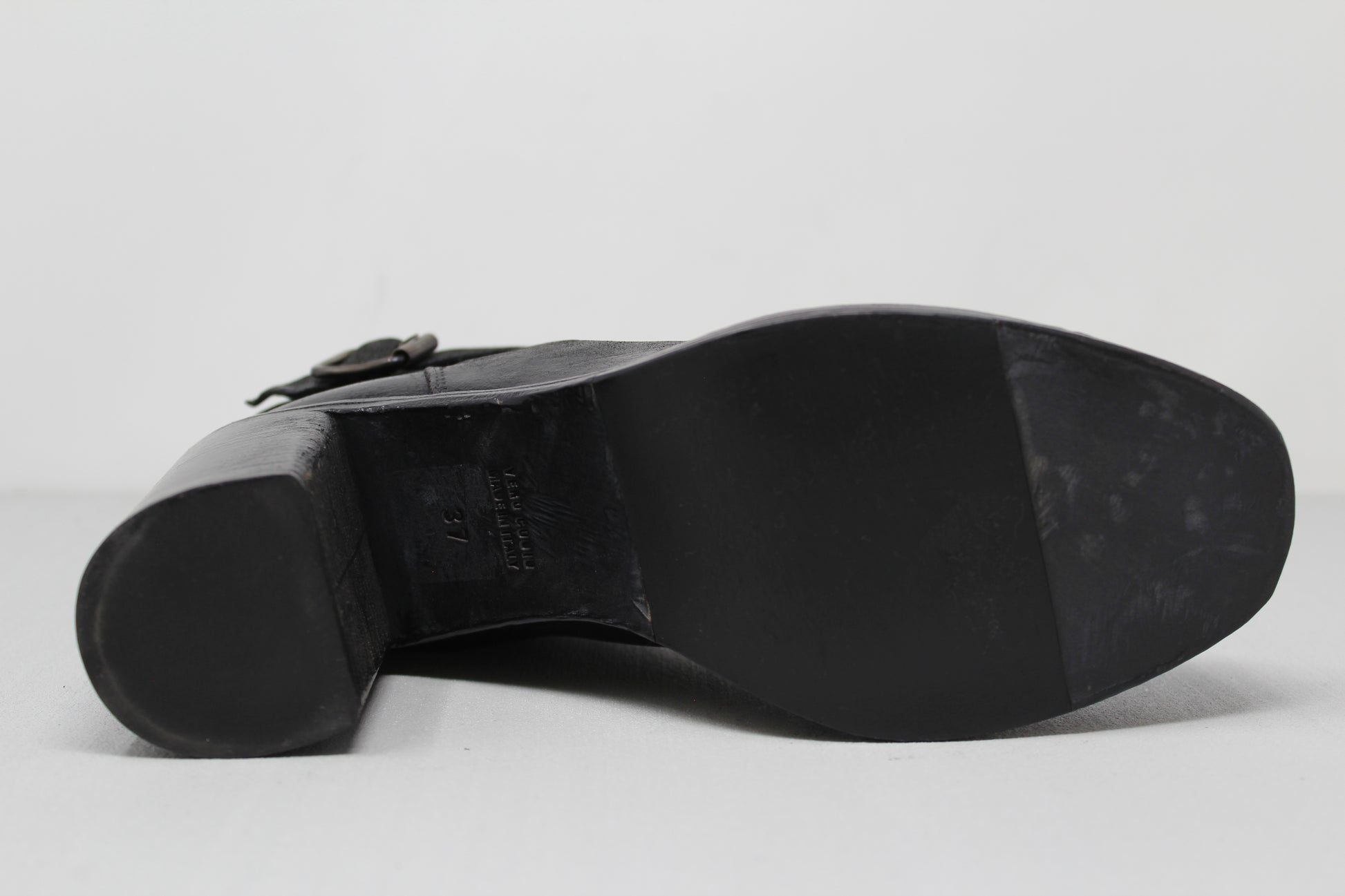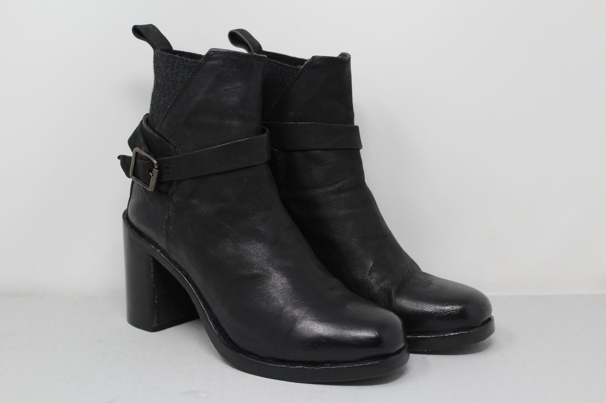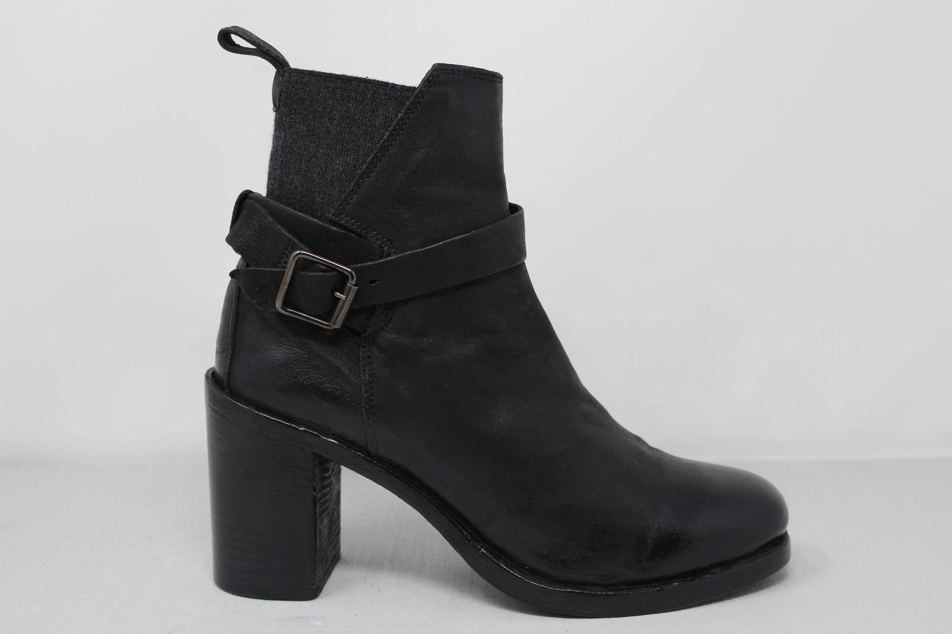 Women's ankle boot with elastic back and ornamental buckle made of soft vintage-effect nubuck leather.