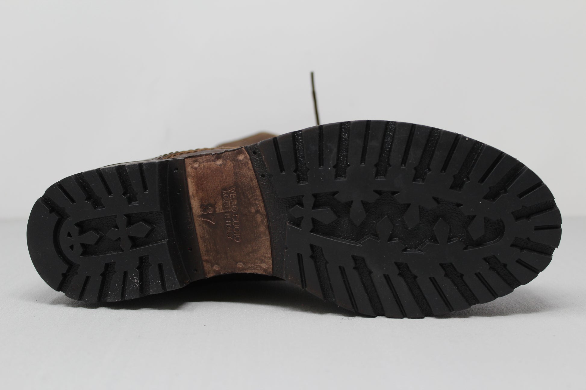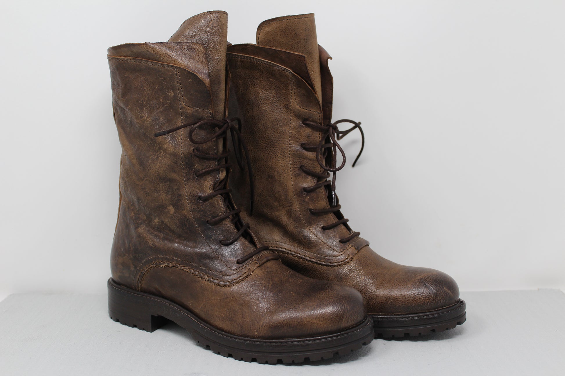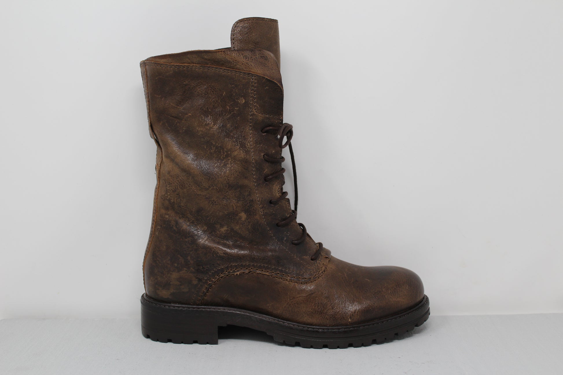 Women's "Combat" ankle boot with 7-hole lacing made of vegetable-tanned calfskin.
