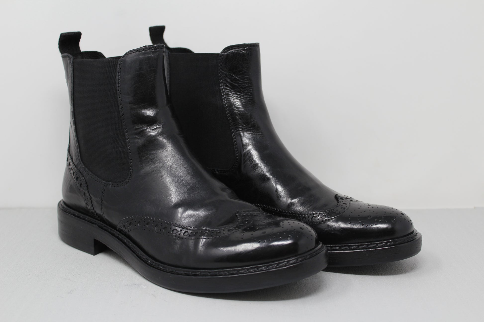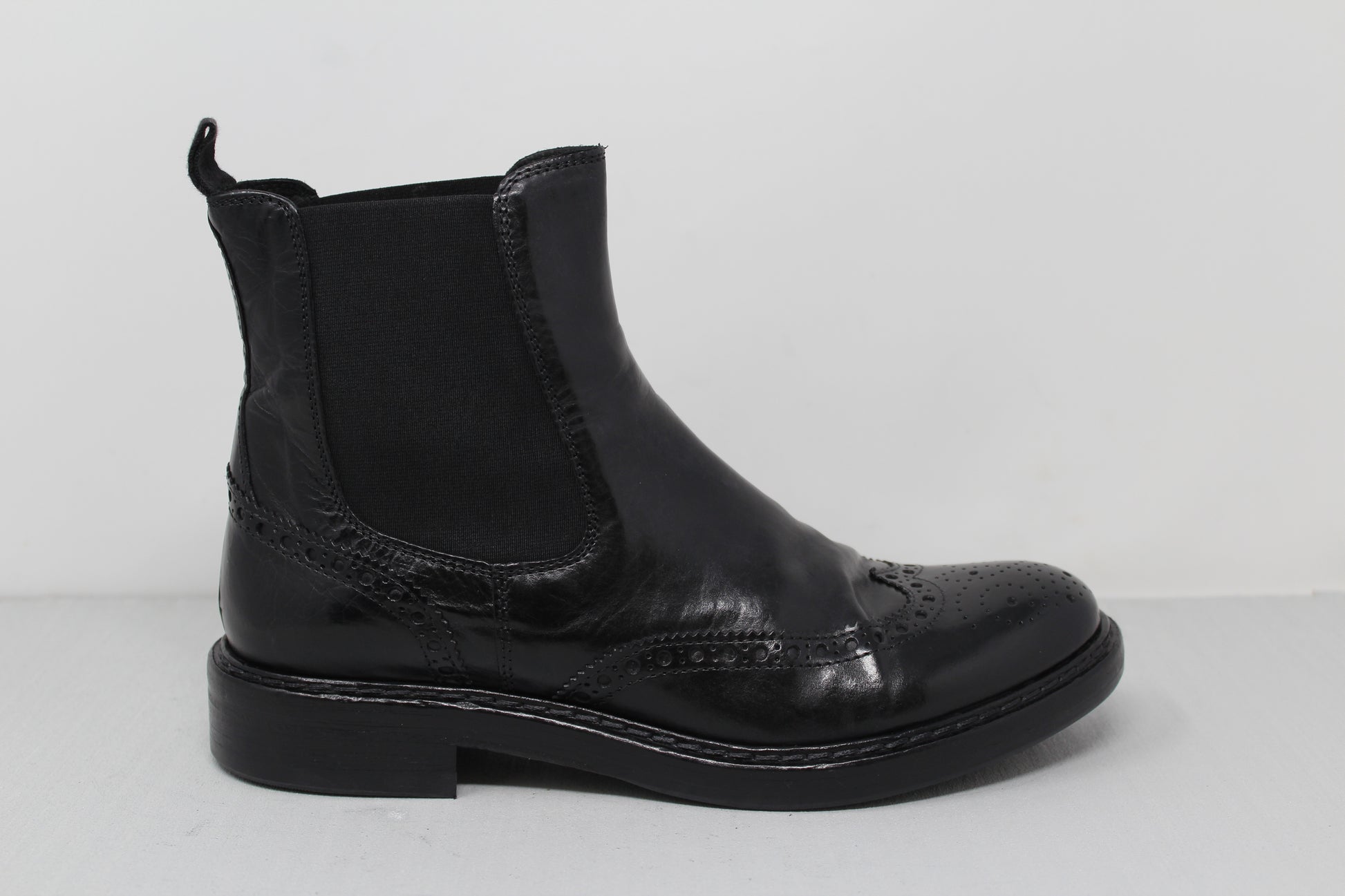 Women's Chelsea boot with double elastic and swallowtail finish made of calfskin.