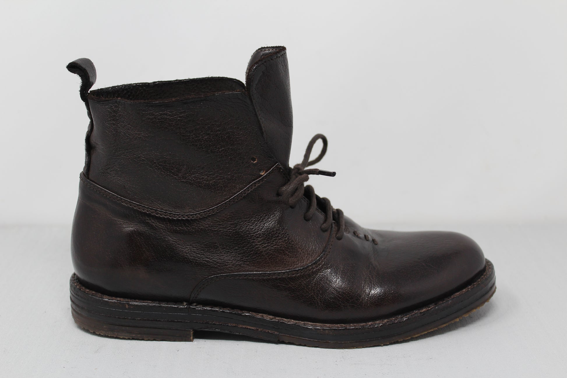 Women's ankle boot with 7-hole lacing made of buffalo leather.