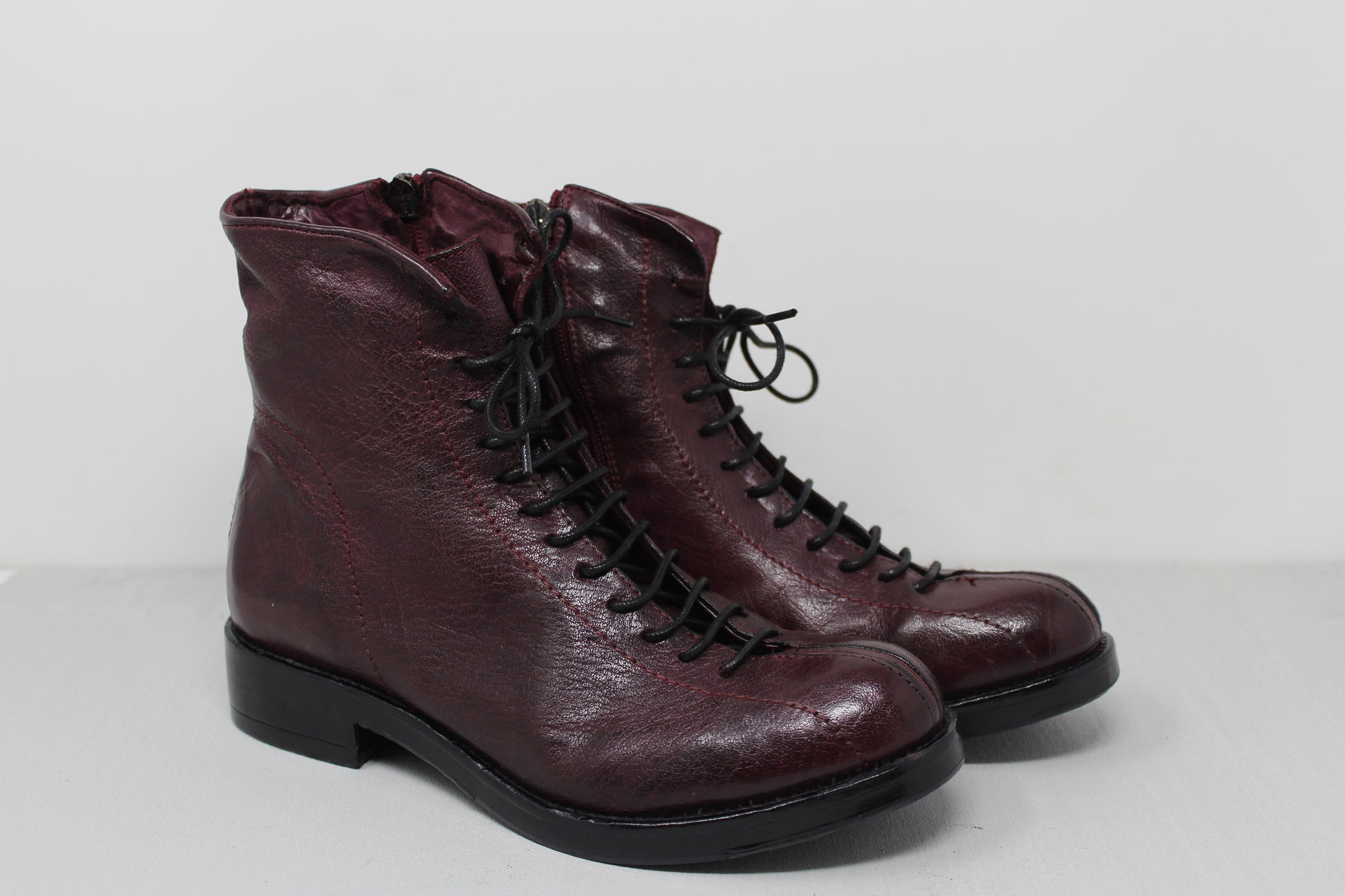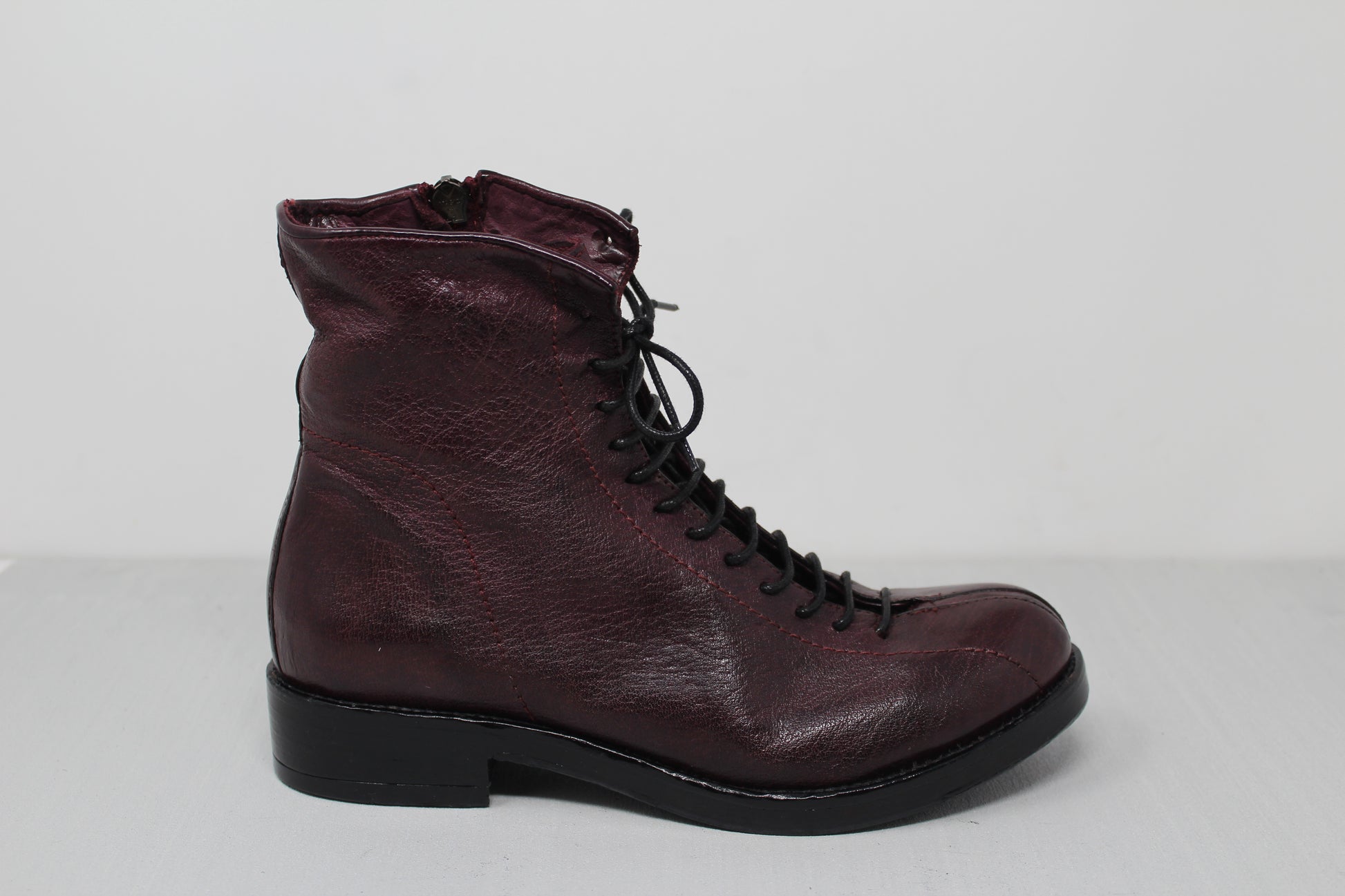 Stivaletto stringato da donna con allacciatura a 13 fori e doppia impuntura sulla punta realizzato in pelle di bufalo.