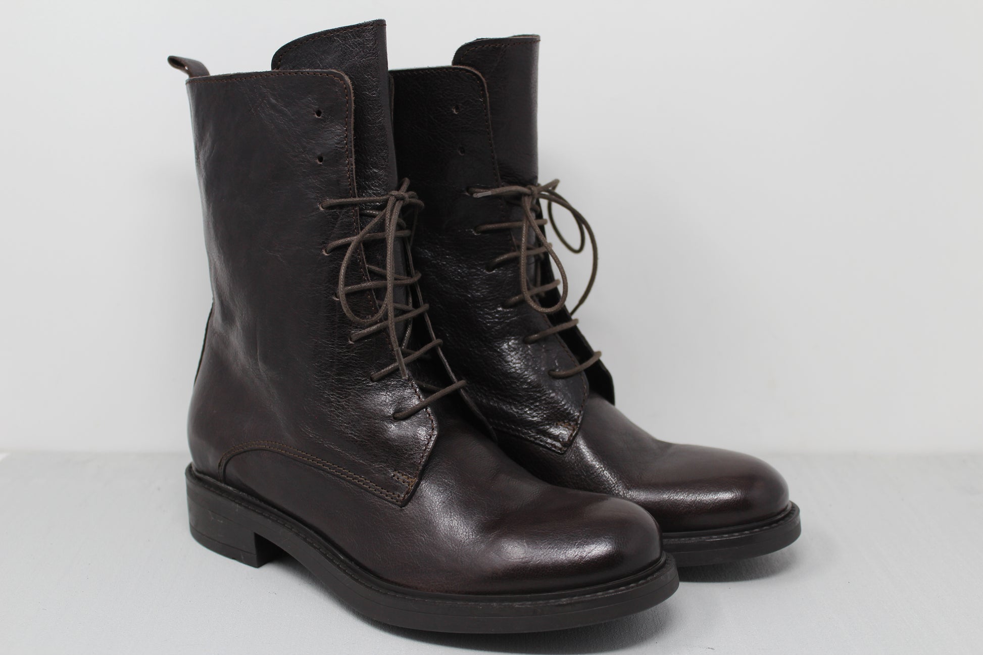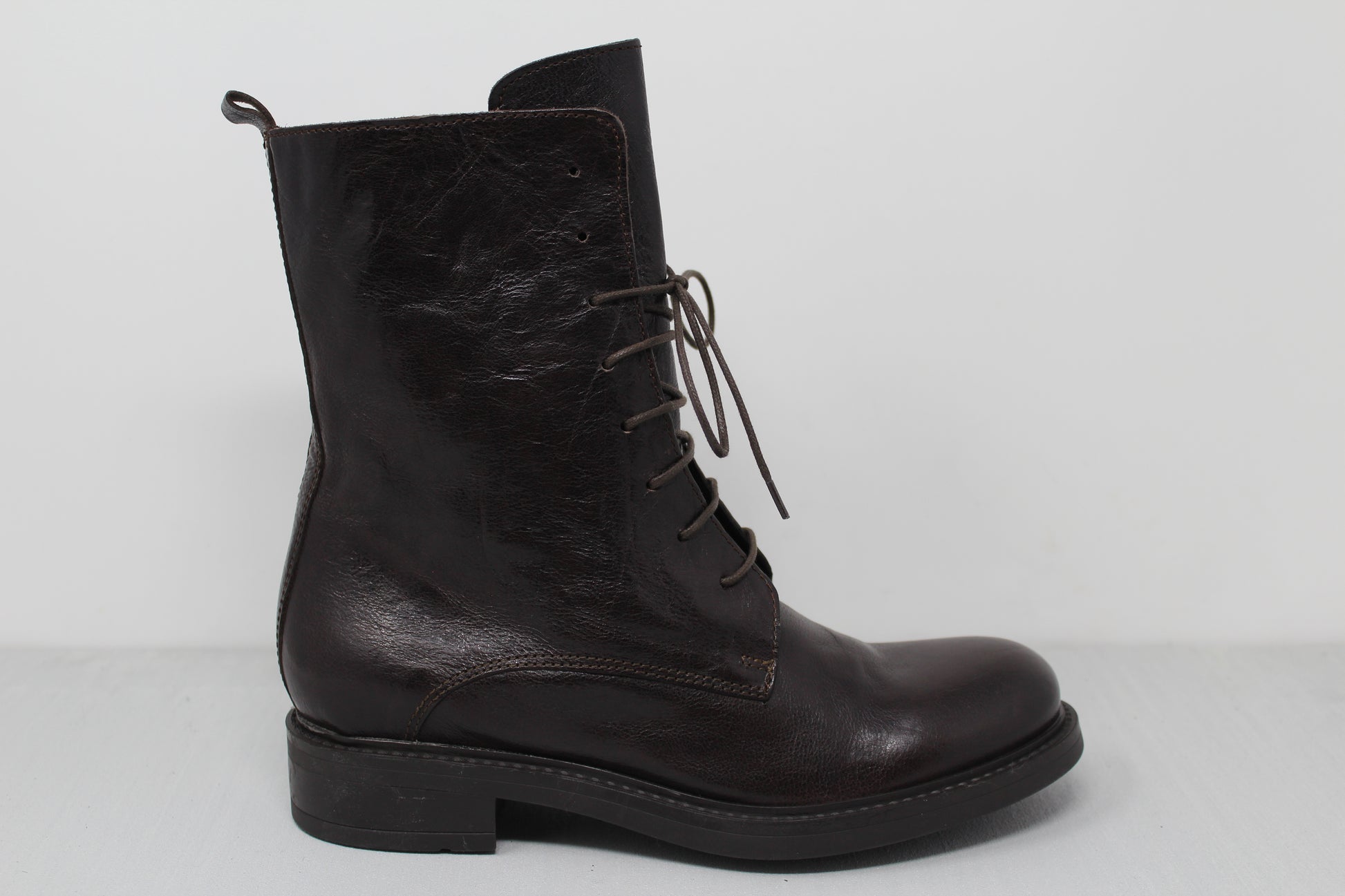 Stivaletto stringato da donna con zip interna ed allacciatura a 8 fori realizzato in pelle di bufalo.