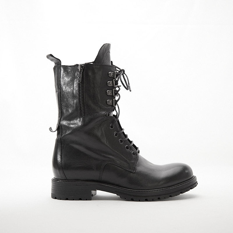Stivaletto da donna con allacciatura a 5 fori realizzata in pelle di bufalo.