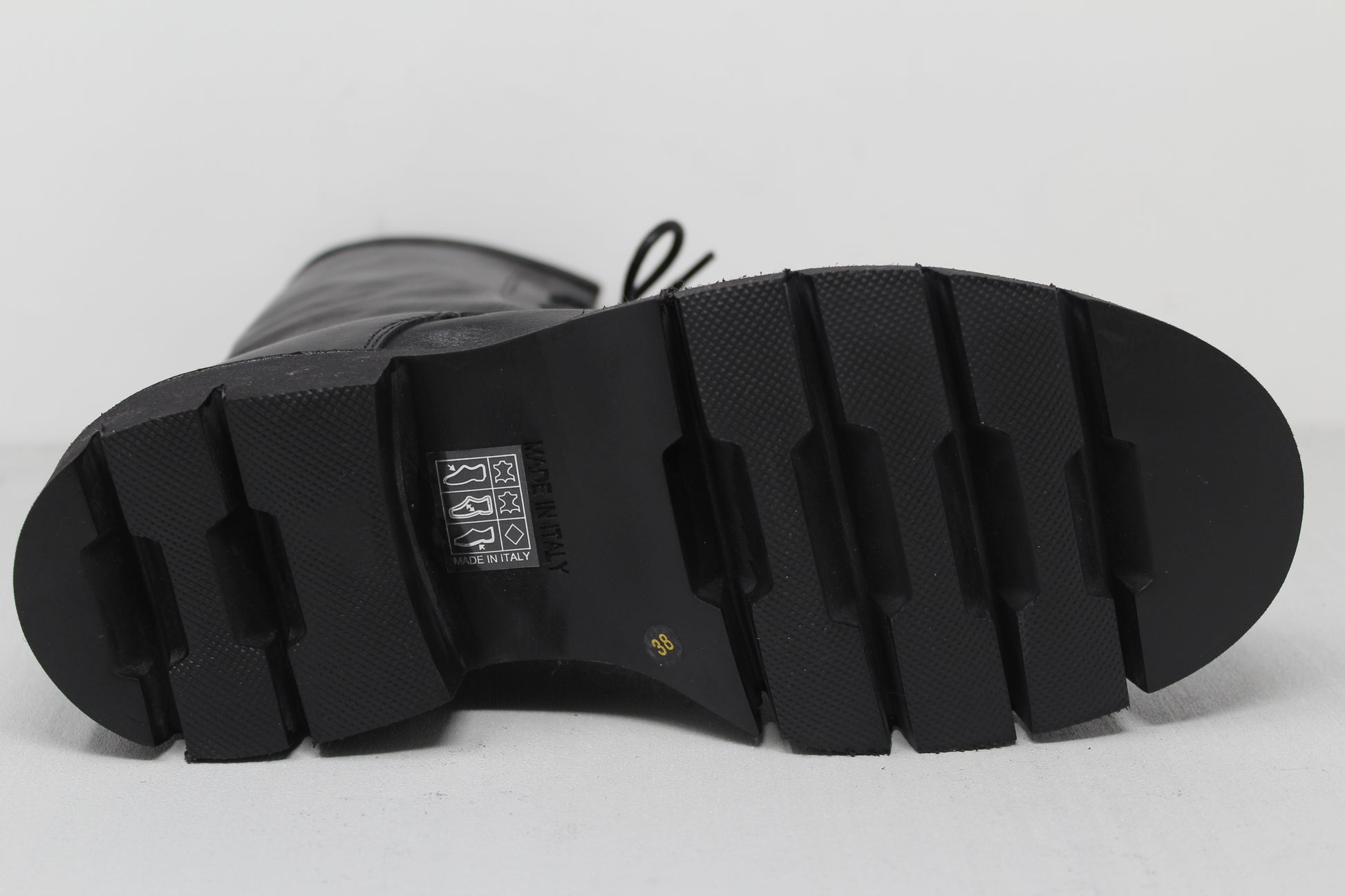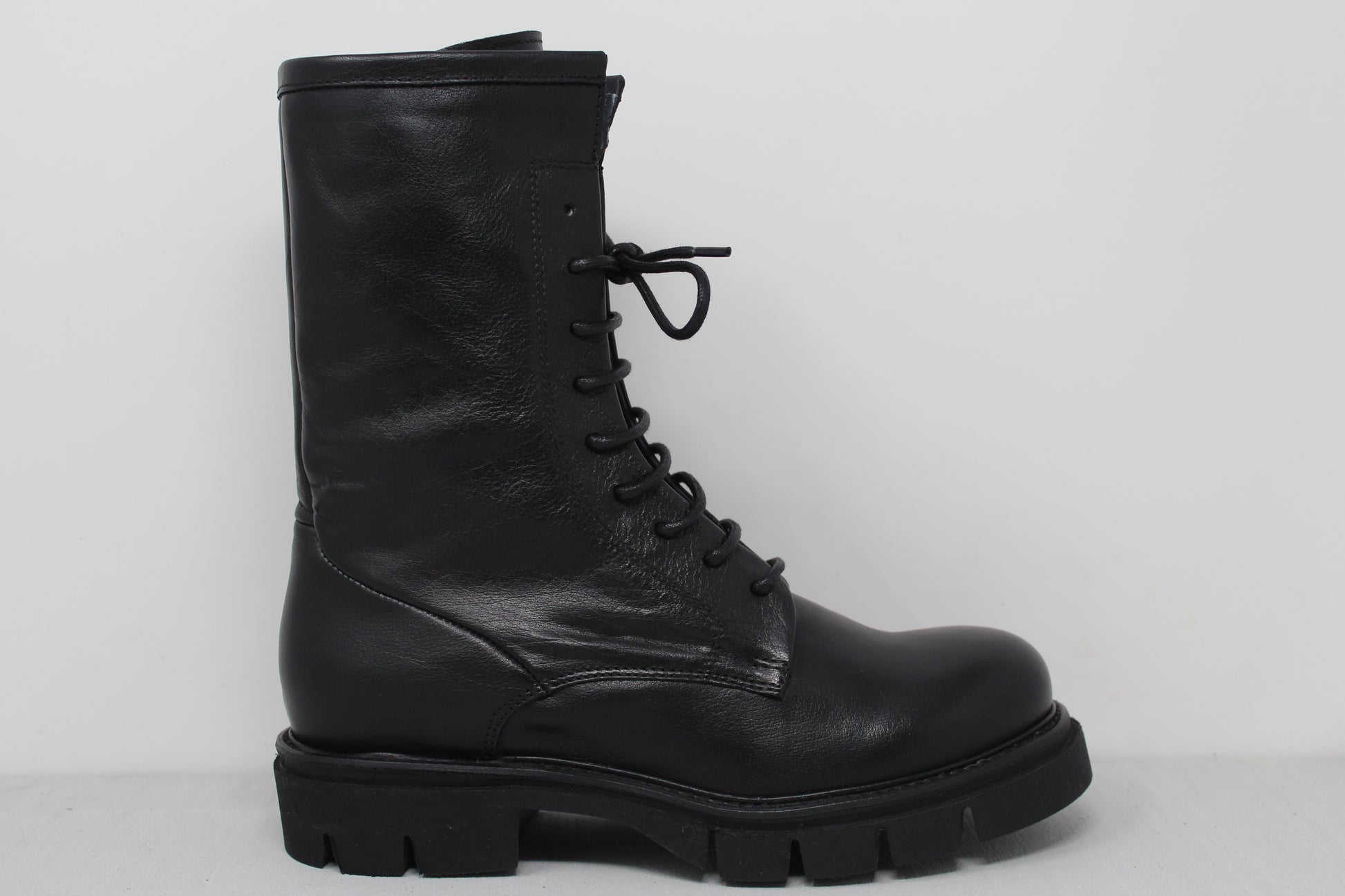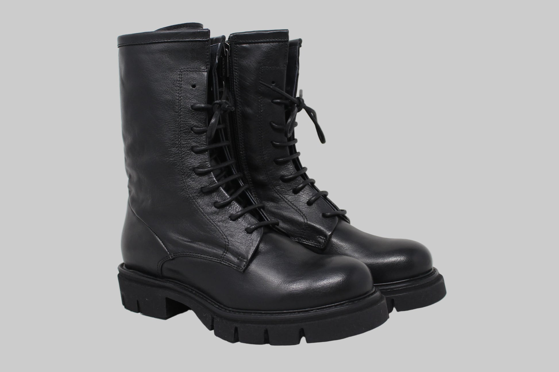 Stivaletto stringato da donna con zip interna ed allacciatura a 9 fori realizzato in pelle di bufalo.